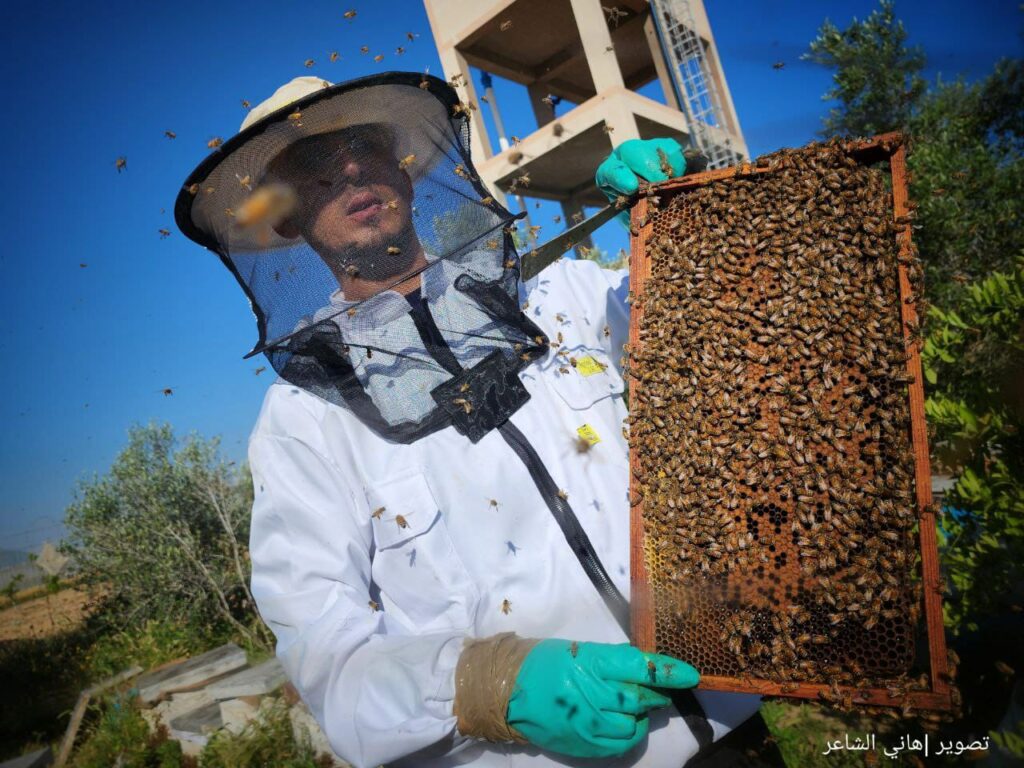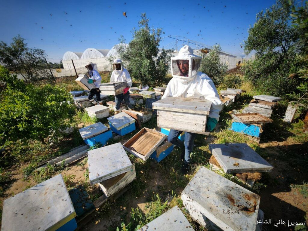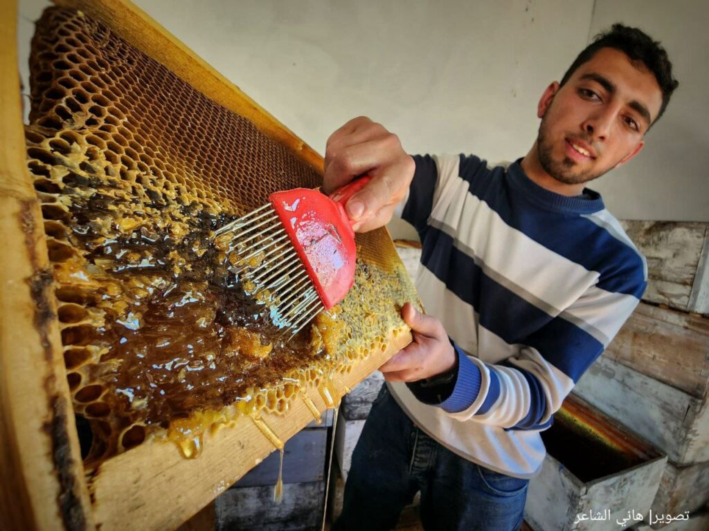 بالصور.. بدء موسم قطف عسل النحل، في بلدة خزاعة، جنوب قطاع غزة.