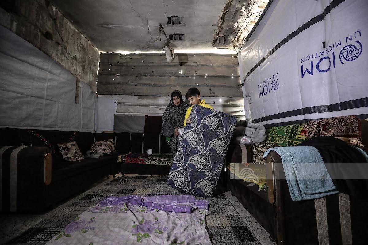 صور : عائلة نازحة تعيش داخل بناية مدمرة في مخيم البريج في ظل ظروف إنسانية قاسية نتيجة اشتداد المنخفض الجوي.