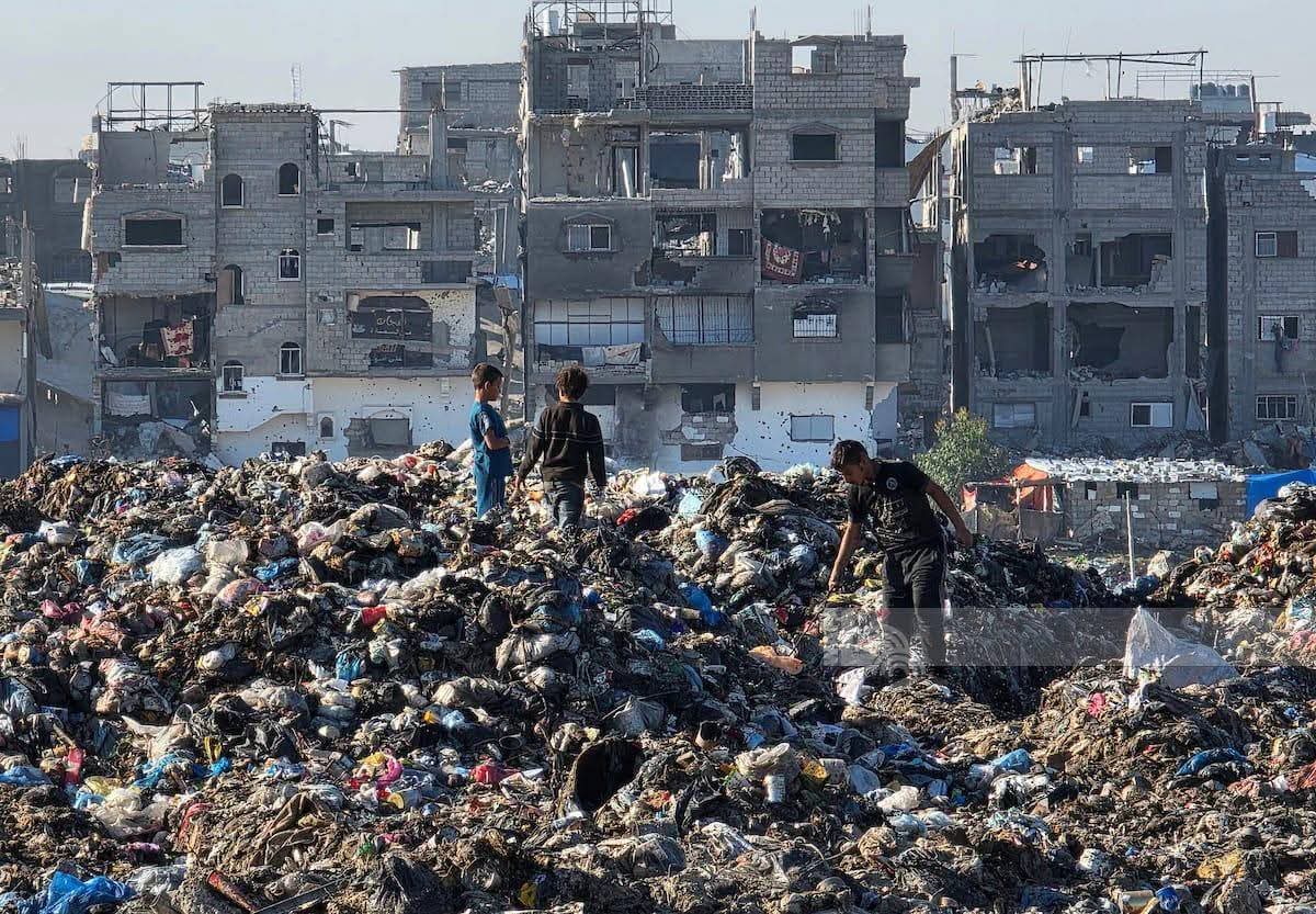 صور: نازحون شمال خان يونس يبحثون في مكب النفايات عن قطع بلاستيكية لاستخدامها كوقود بديل للطهي في ظل انعدام الغاز والوقود.