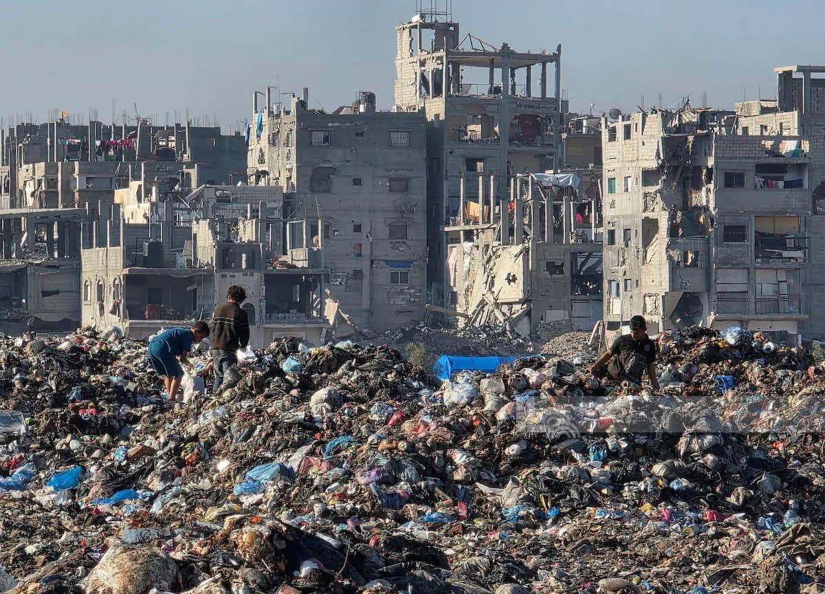 صور: نازحون شمال خان يونس يبحثون في مكب النفايات عن قطع بلاستيكية لاستخدامها كوقود بديل للطهي في ظل انعدام الغاز والوقود.