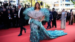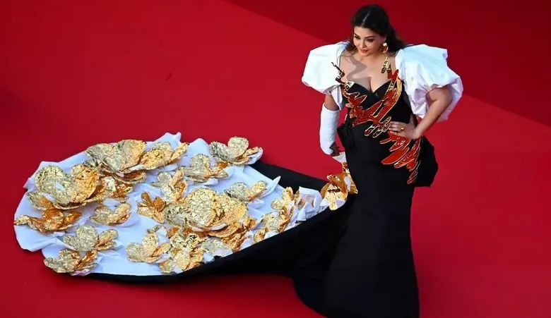 ظهرت الممثلة الهندية آيشواريا راي بإطلالتين كارثيتين على سجادة “كان” الحمراء، وقد حملتا توقيع دار Falguni Shane Peacock india. تميزت الإطلالتان بالطابع الدرامي وقد تزينت الأولى بورود ذهبية ضخمة فيما تزيّنت الأخرى بلمسات معدنية فضية وزرقاء وكانتا من أسوأ الإطلالات التي شهدها مهرجان “كان” هذا العام.