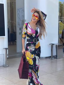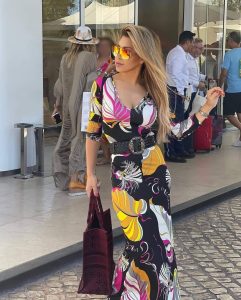 وظهرت الفنانة نوال في الصور بفستان يحمل مجموع من النقشات والألوان الصيفية المبهجة. وأكملت إطلالتها بنظارة شمس بألوان نارية، أمّا من الناحية الجمالية فتركت شعرها منسدلاً على كَتِفَيها واختارت أحمر شفاه باللون الزهري الفاتح.