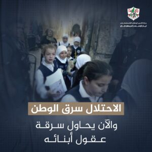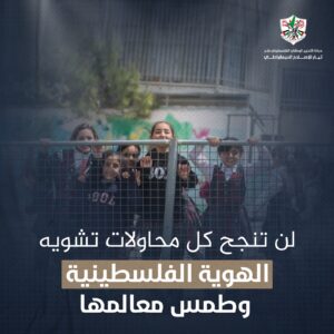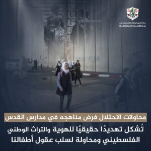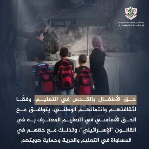 وطالب التيار في حملته المؤسسات الدولية ذات الصلة بالوقوف عند مسؤولياتها، وكبح جماح تغول الاحتلال وأذرعه التنفيذية، وحماية المؤسسات التعليمية الفلسطينية، مشدداً على ضرورة توفير الحكومة الفلسطينية للبدائل وتأمين الاحتياجات اللازمة لحماية نظام التعليم في القدس.
