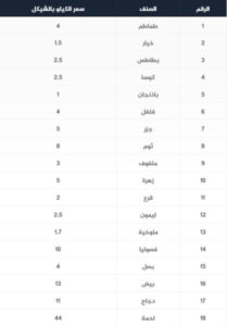 وجاء متوسط الأسعار وفقًا لوزارة الزراعة في قطاع غزة على النحو التالي: