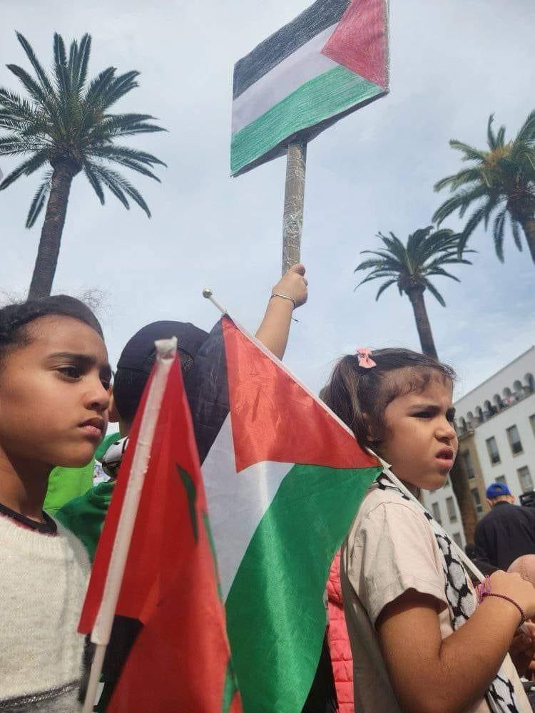 شبكة الخامسة للأنباء _غزة أطفال المغرب يتضامنون مع أطفال فلسطين امام البرلمان المغربي