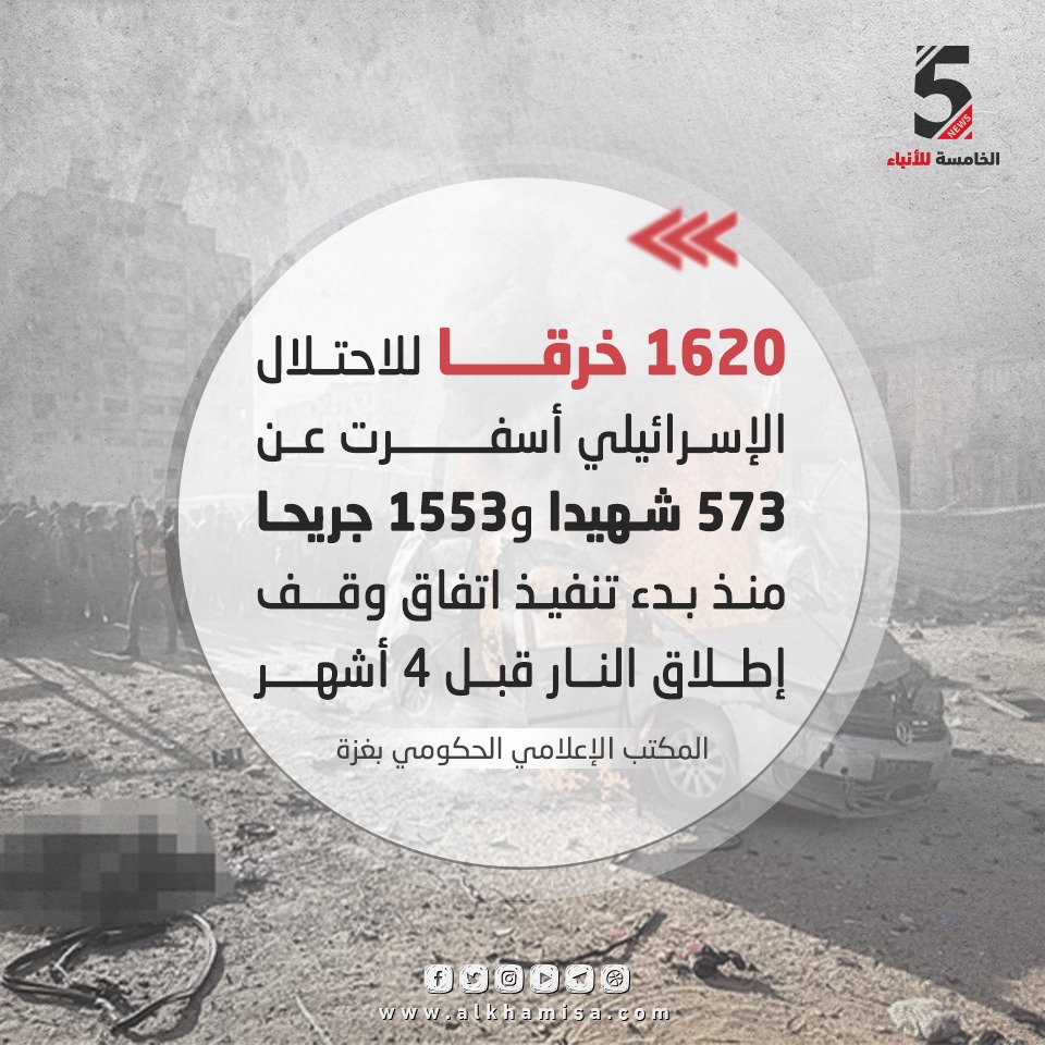 الرئيسية/بطاقات اخبارية/1620 خرقا للاحتلال الإسرائيلي منذ بدء اتفاق وقف إطلاق النار بطاقات اخبارية 1620 خرقا للاحتلال الإسرائيلي منذ بدء اتفاق وقف إطلاق النارمنذ ساعة واحدة شبكة الخامسة للأنباء - غزة الوسوم#وقف_اطلاق_النار 1620 خرقا للاحتلال الإسرائيلي منذ بدء اتفاق وقف إطلاق النار اتفاق الاحتلال خرق نسخ الرابط تم نسخ الرابط منذ ساعة واحدة شاركها فيسبوك X ماسنجر ماسنجر واتساب تيلقرام طباعة