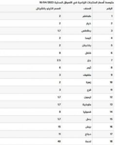 القائمة المحدثة بأسعار المنتجات الزراعية بغزة