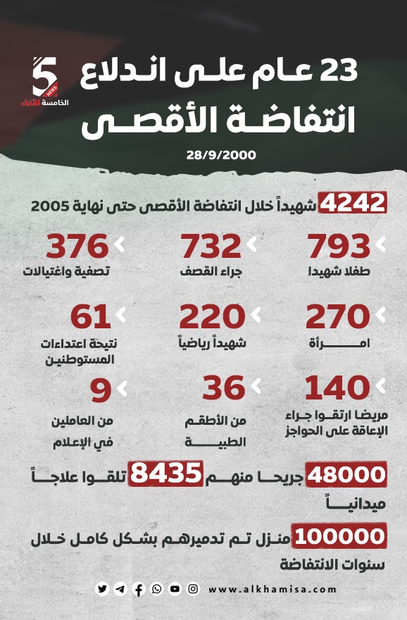 الرئيسية/انفو جرافيك الخامسة/23 عام على اندلاع انتفاضة الأقصى انفو جرافيك الخامسة 23 عام على اندلاع انتفاضة الأقصى28 سبتمبر، 2023 شبكة الخامسة للأنباء - غزة23 عام على اندلاع انتفاضة الأقصى الوسوم#23 عام على اندلاع انتفاضة الأقصى #انتفاضة_الأقصى نسخ الرابط تم نسخ الرابط 28 سبتمبر، 2023 شاركها فيسبوك X ماسنجر ماسنجر واتساب تيلقرام طباعة