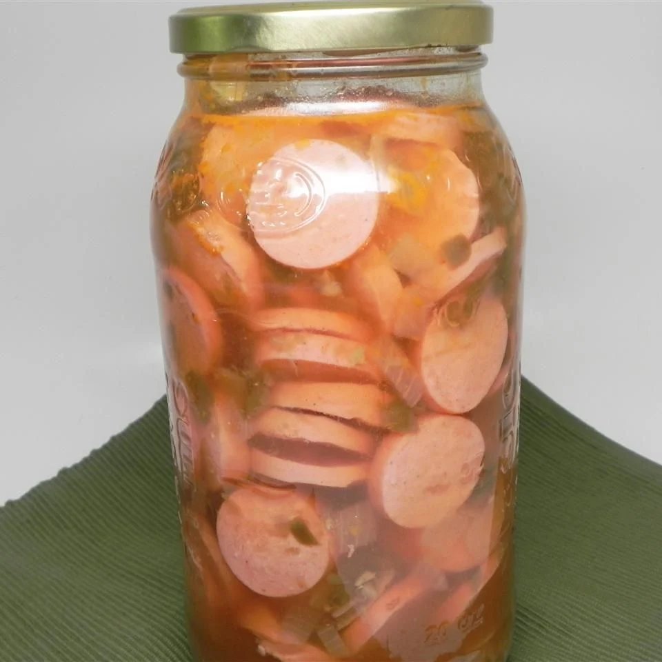 اعتقد بعض الناس أن البيض المخلل ليس متخلفًا بدرجة كافية، لذا قاموا بتقطيع بعض نقانق بولونيا. مخلل لحم؟ كم هذا غريب؟