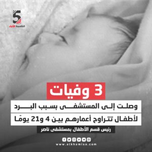 3 وفيات وصلت إلى المستشفى بسبب البرد لأطفال تتراوح اعمارهم بين 4-21 يوماً