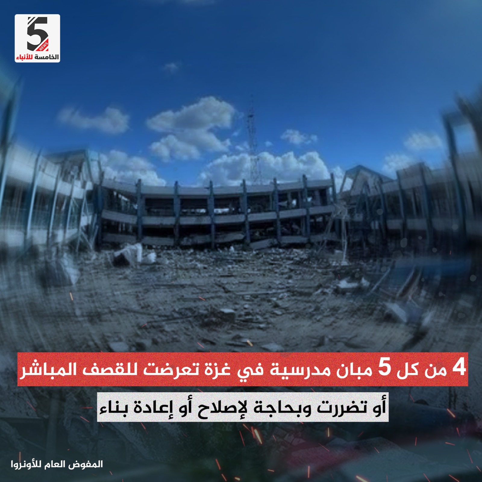 4 من كل 5 مبانٍ مدرسية في غزة تعرضت للقصف المباشر أو تضررت