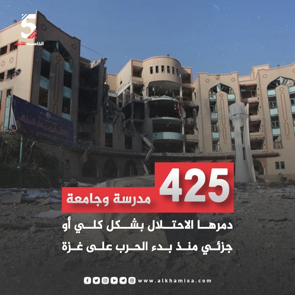 الرئيسية/بطاقات اخبارية/425 مدرسة وجامعة دمرها الاحتلال بشكل كلي أو جزئي بطاقات اخباريةطوفان الأقصى 425 مدرسة وجامعة دمرها الاحتلال بشكل كلي أو جزئي28 مايو، 2024 شبكة الخامسة للأنباء - غزة الوسوم#تدمير_جزئي #تدمير_كلي #جامعة #طوفان_الأقصى #قطاع_غزة #مدرسة نسخ الرابط تم نسخ الرابط 28 مايو، 2024 شاركها فيسبوك X ماسنجر ماسنجر واتساب تيلقرام طباعة
