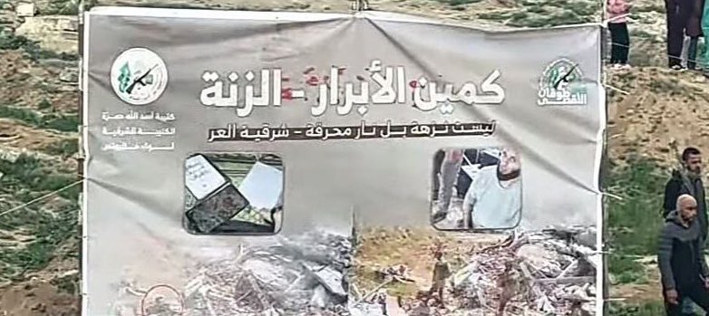 وكُتب على لافتة “كمين الفراحين ليس نزهة.. بل محرقة”، في إشارة إلى كمينين نصبتهما كتائب القسام لقوات إسرائيلية في منطقة الفراحين شرق مدينة خانيونس، إذ يعود الكمين الأول إلى 12 شباط/ فبراير 2024، وقتل خلاله قائد الكتيبة 630 احتياط ونائب قائد سرية وجندي، إضافة إلى العديد من الجرحى.