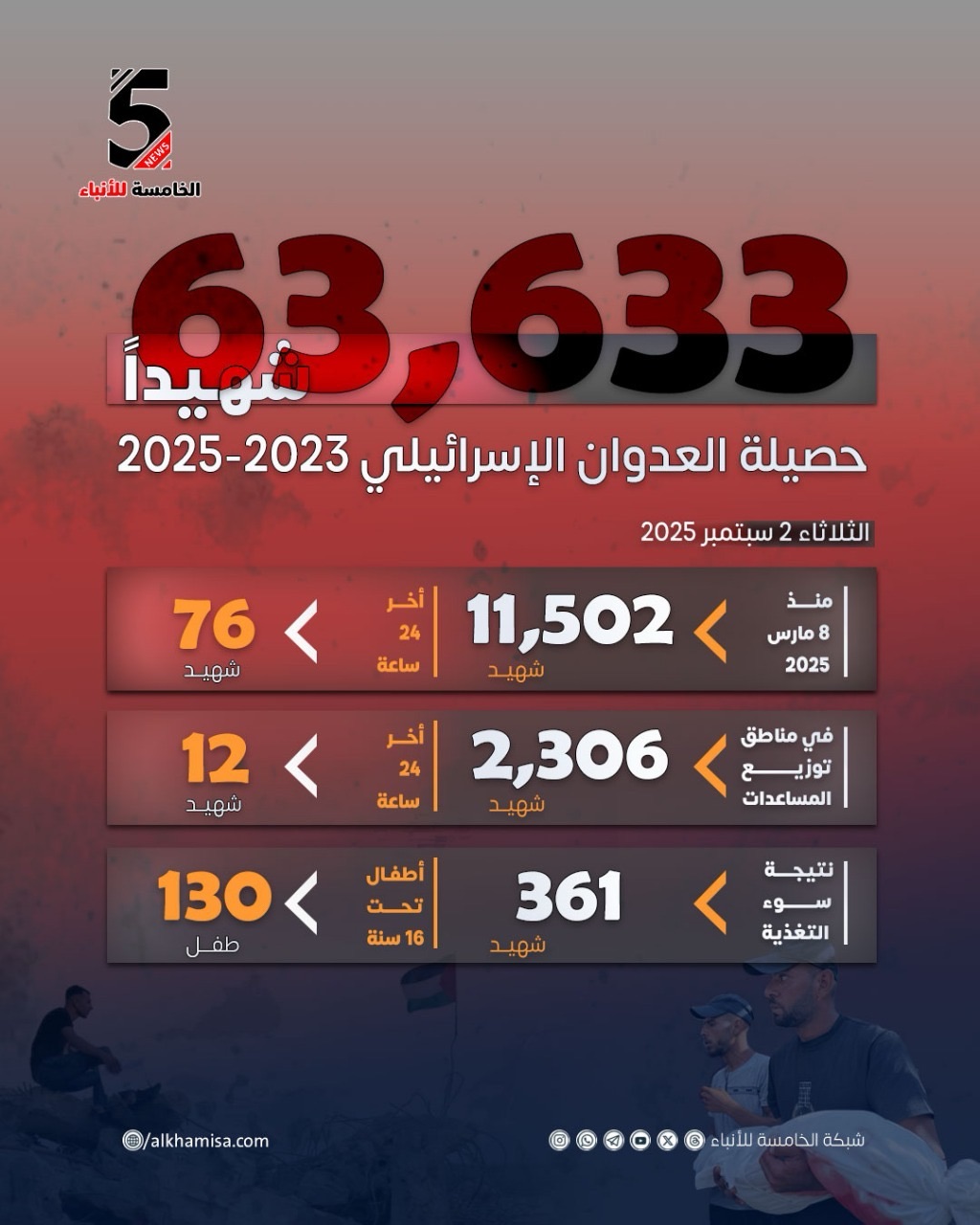 63,633 شهيداً حصيلة العدوان الإسرائيلي على غزة
