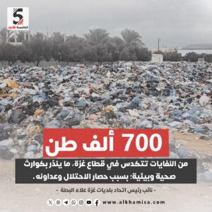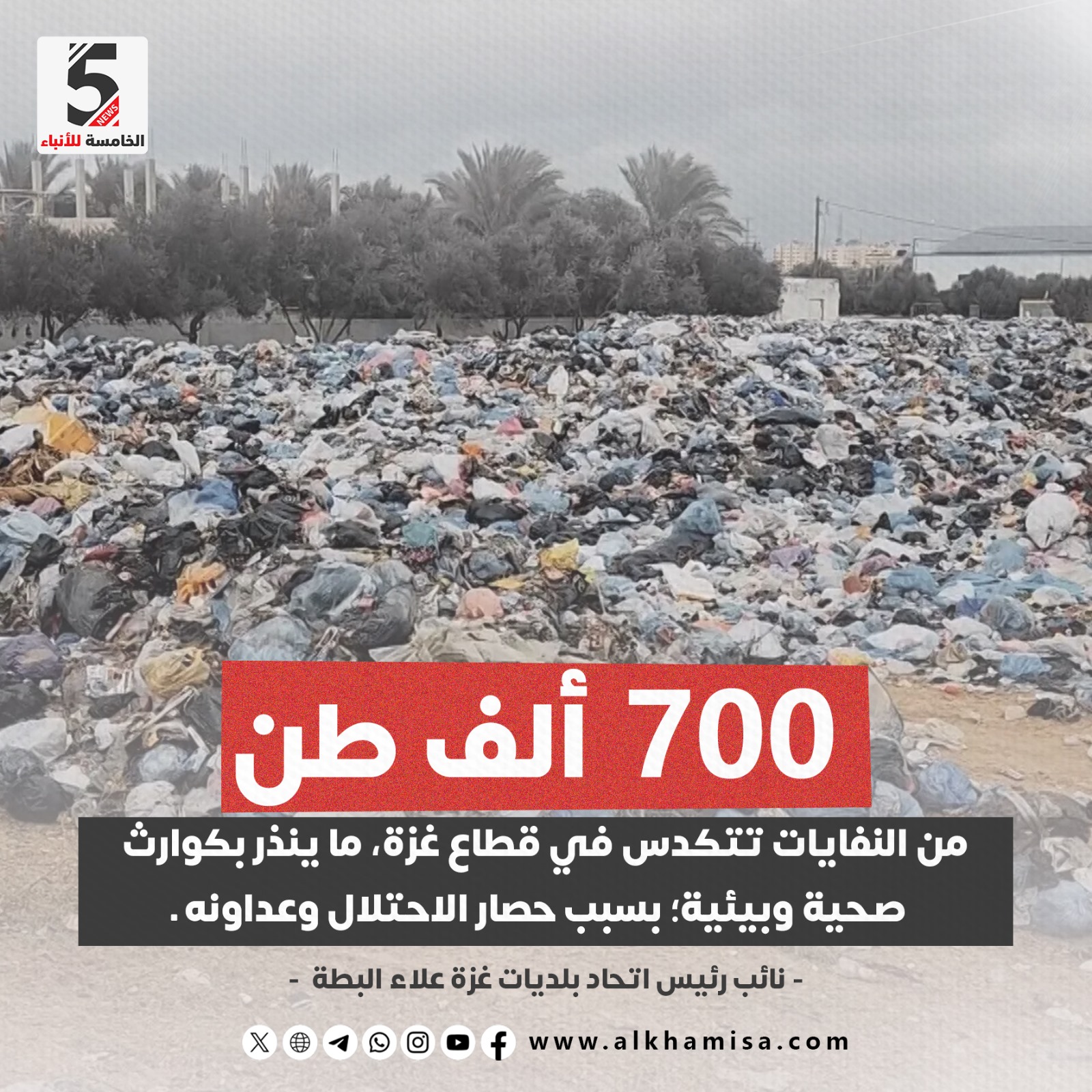 700 ألف طن من النفايات تتكدس في قطاع غزة