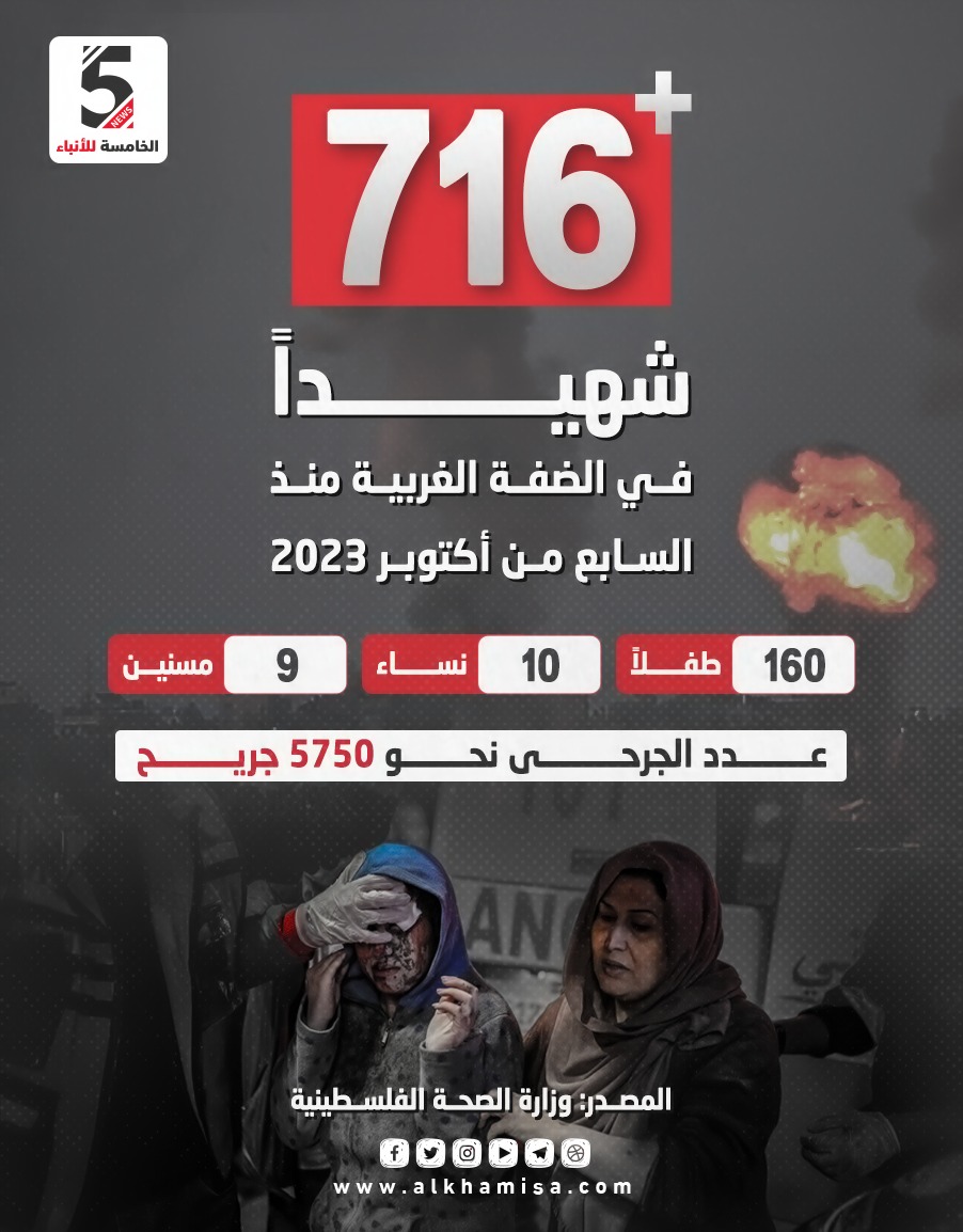 716 شهيداً في الضفة الغربية منذ السابع من أكتوبر 2023