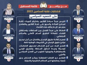 وأوضحت القائمة، أنّ برنامجها يأتي انطلاقًا من الدور الوطني التاريخي الذي أدّاه على الدوام حُرّاس العدالة وحماة القانون، وأعضاء نقابة المحامين الفلسطينيين، وحفاظًا على الإرث النضالي للمحامي الفلسطيني الذي واجه المحتل الغاصب في قاعات القضاء المحلي والدولي، ودفاعاً عن هذا الجسم الذي يشكّل درّة تاج العمل النقابي في فلسطين، والتزاماً بالديمقراطية وحق الإنسان الفلسطيني في اختيار ممثليه في كافة المواقع.