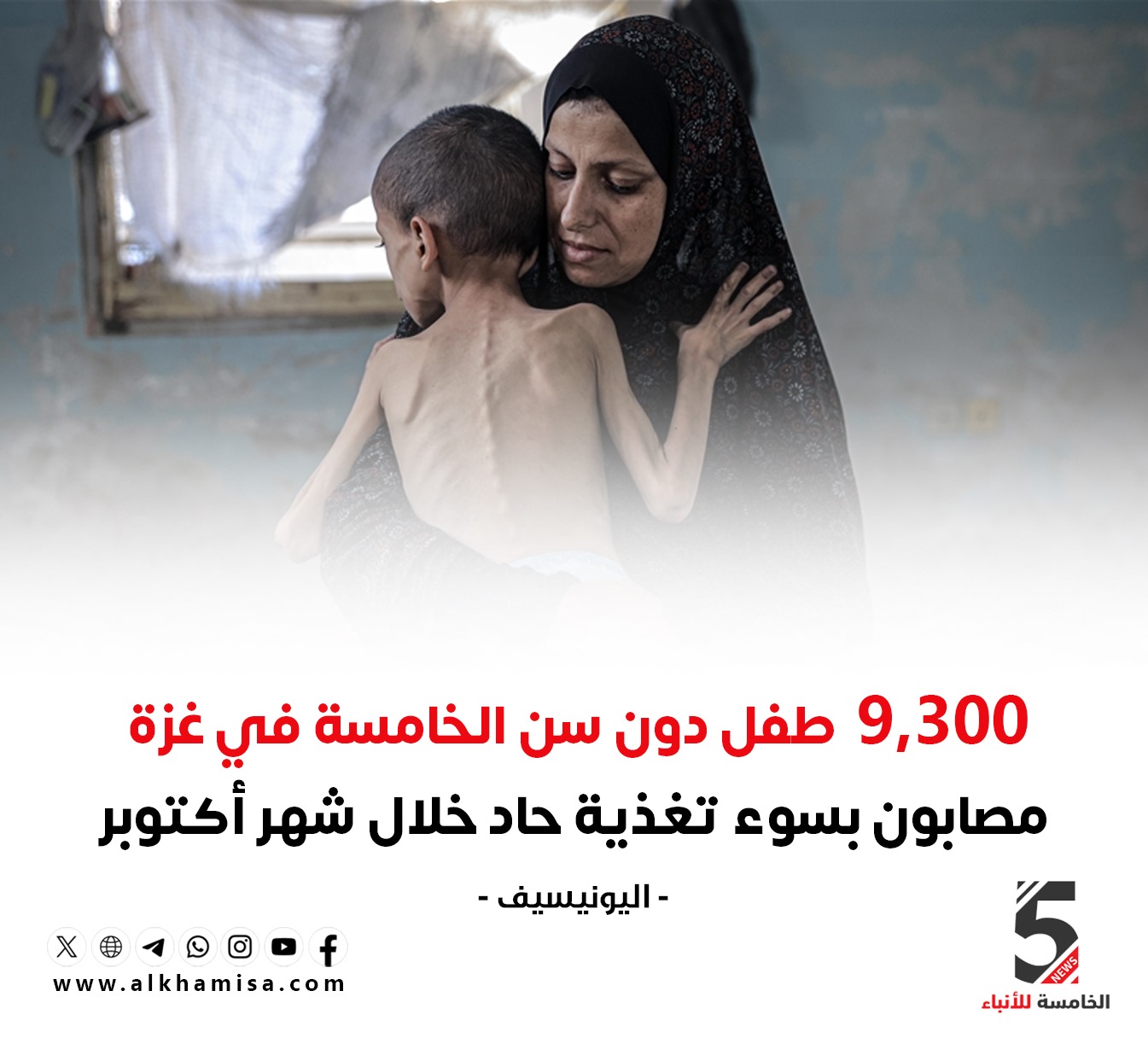 9300 طفل دون سن الخامسة في غزة مصابون بسوء تغذية حاد خلال شهر أكتوبر