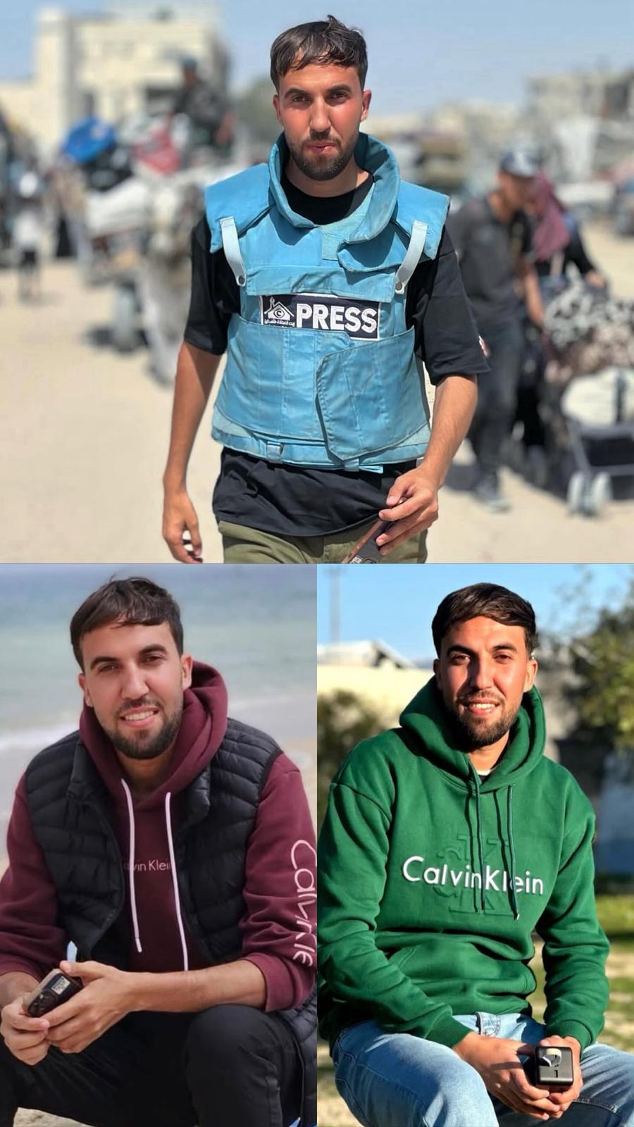 The journalist Muath Mohammad Mustafa Abu Taha, born in Rafah on September 14, 1997, was the youngest in his family. He was an ambitious, quiet young man known in his community for his gentle smile, good manners and warm relationships with everyone. He held a diploma in multimedia; for him, photography was not just a profession but a true passion he chose despite its dangers, dedicating his life to it until his last moment.