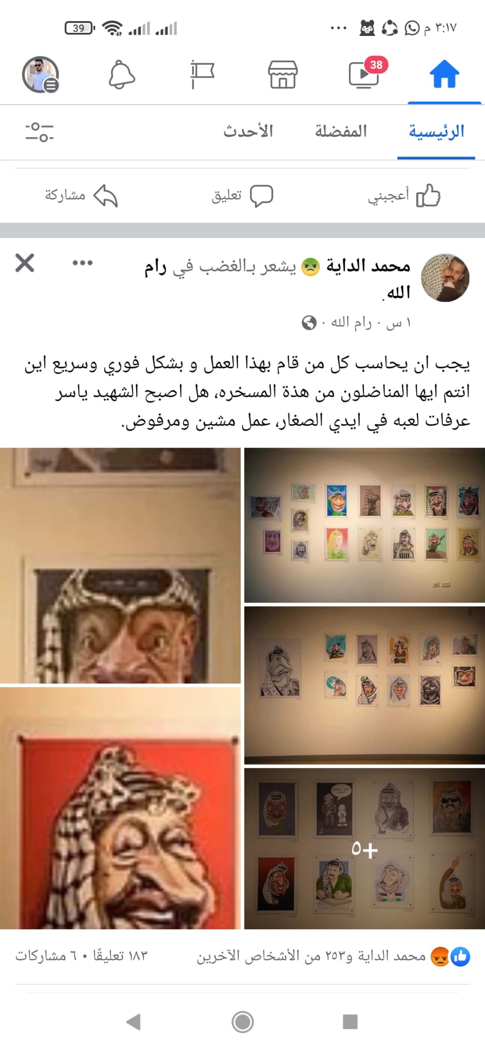 بعد نشر الصور المسيئة للرمز أبو عمار..