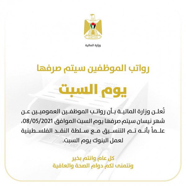 كشفت وزارة المالية الفلسطينية، ظهر اليوم الخميس، موعد صرف الرواتب للموظفين العموميين.