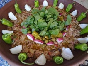 يتم تقديمها للضيوف كوجبة متكاملة تضم أنواع مختلفة من الخضار ويمكن اعدادها للسهرة تحت ضوء القمر كوجبة عشاء.