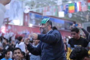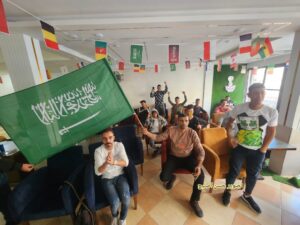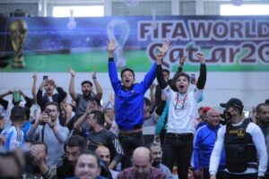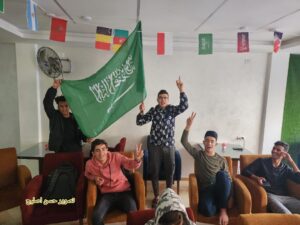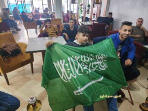 وتجمع المشجعون الفلسطينيون في قطاع غزة والضفة المحتلة في الأماكن المخصصة التي تم تجهيزها مسبقاً لمشاهدة المباريات من خلف الشاشات العملاقة لدعم الأخضر السعودي أمام منتخب الأرجنتين الذي تلقى الهزيمة التاريخية بهدفين مقابل هدف واحد
