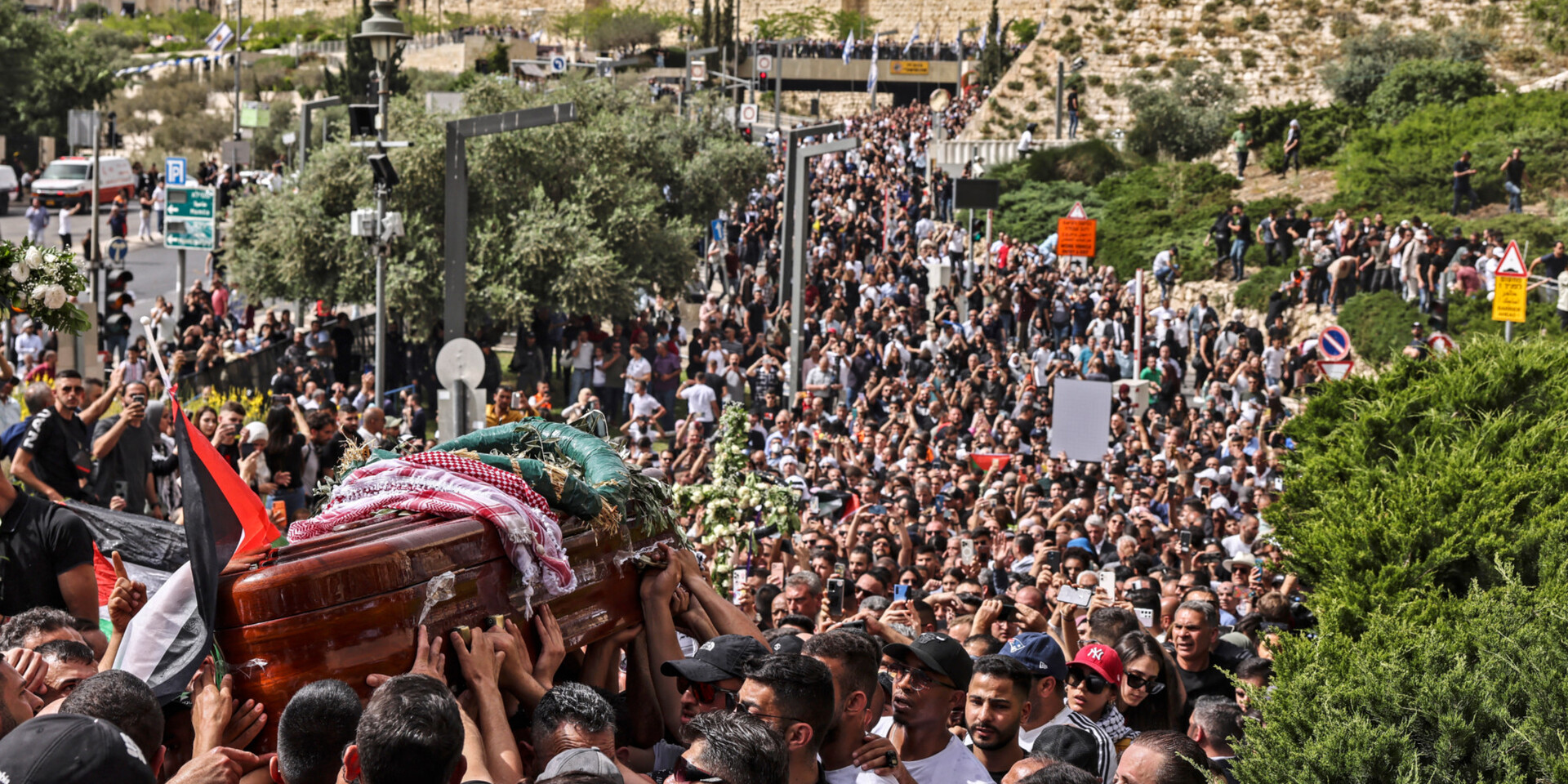 بالفيديو: عشرات الاف الفلسطينيين يشيعون الشهيدة الاعلامية ” شيرين ابو عاقلة”
