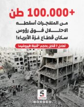 أكثر من 100000 طن من المتفجرات أسقطه الاحتلال فوق رؤوس سكان قطاع غزة الأبرياء