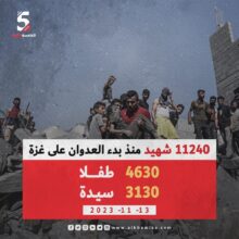 شبكة الخامسة للأنباء – غزة أعلنت وزارة الصحة ارتفاع حصيلة العدوان الإسرائيلي إلى 10569 شهيداً منهم 4324 طفلاً، و2823 سيدة…
