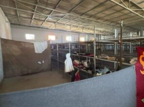 شبكة الخامسة للأنباء _غزة عائلة نازحة من شمال قطاع غزة تعيش داخل أقفاص الدجاج في مزرعة للدواجن جنوب مدينة رفح،…