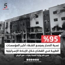 95٪ نسبة الدمار بمجمع الشفاء أكبر المؤسسات الطبية في قطاع غزة