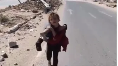 تفاعل واسع مع مشهد يظهر طفلة في غزة وهي تحمل شقيقتها المصابة