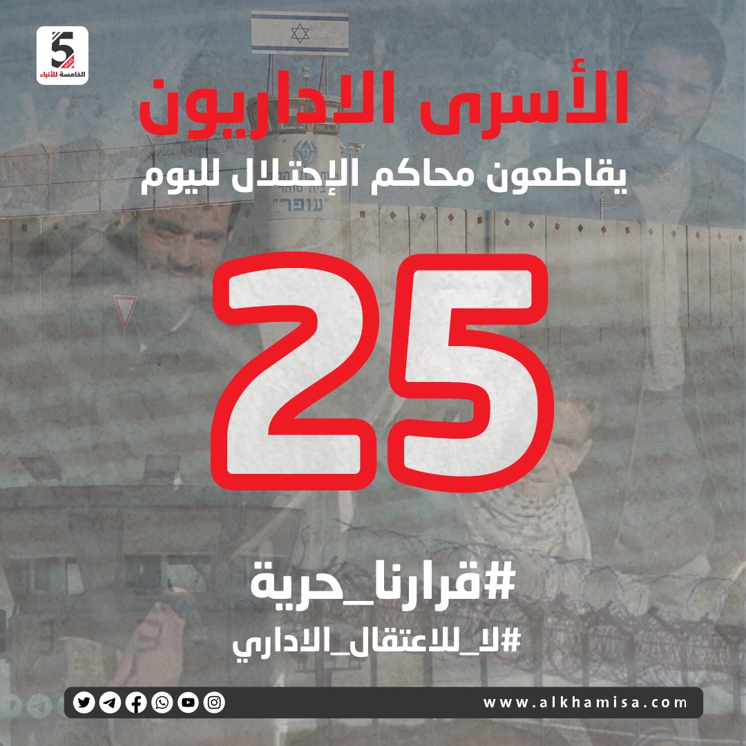 الأسرى الإداريون يقاطعون محاكم الاحتلال لليوم 25 على التوالي