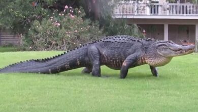 الخامسة للأنباء – أمريكا أظهر مقطع فيديو تمساحا ضخما يزحف بالقرب من منزل ثم يحاول تسلق حائطه في “بونتا غوردا”…