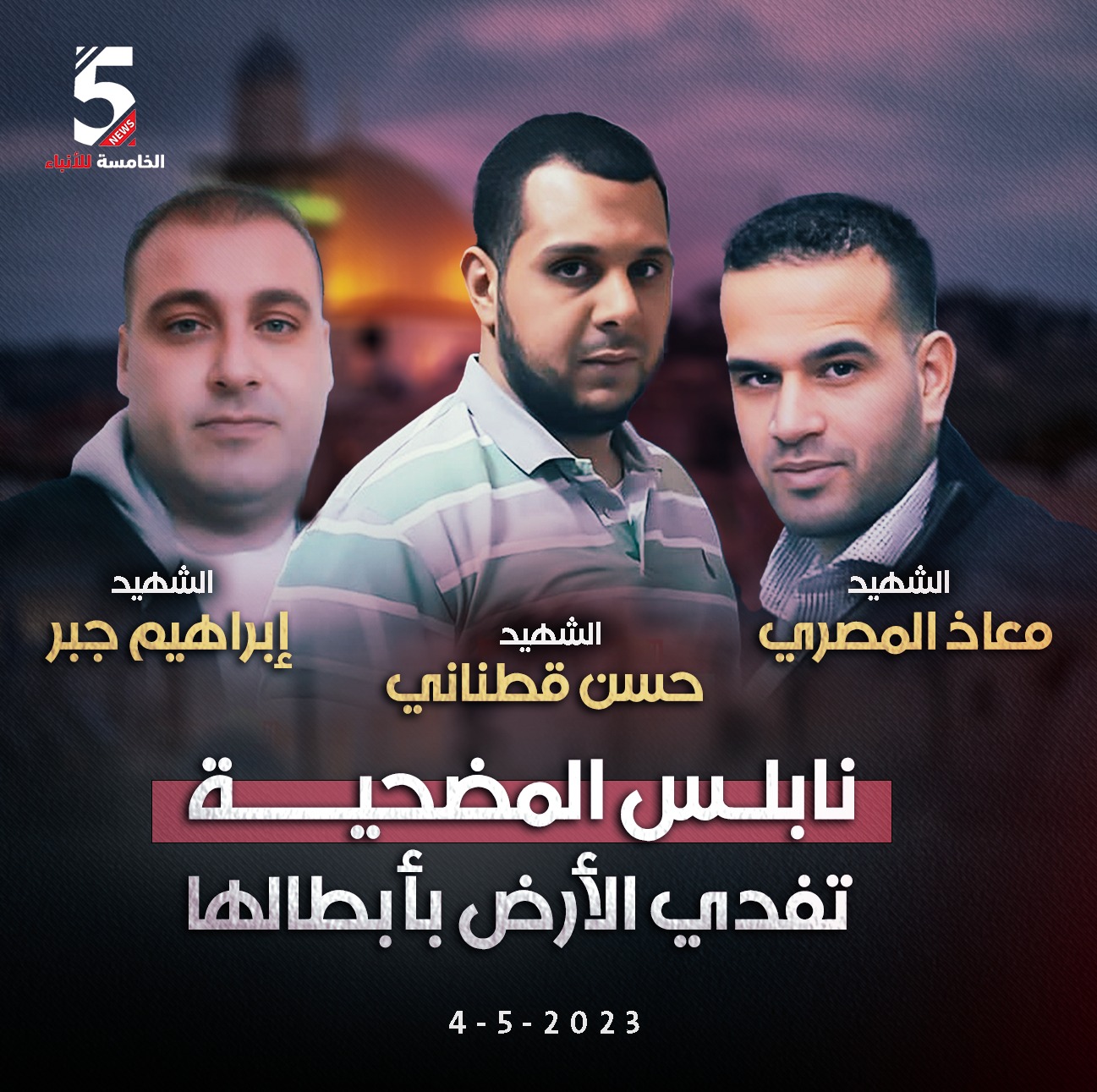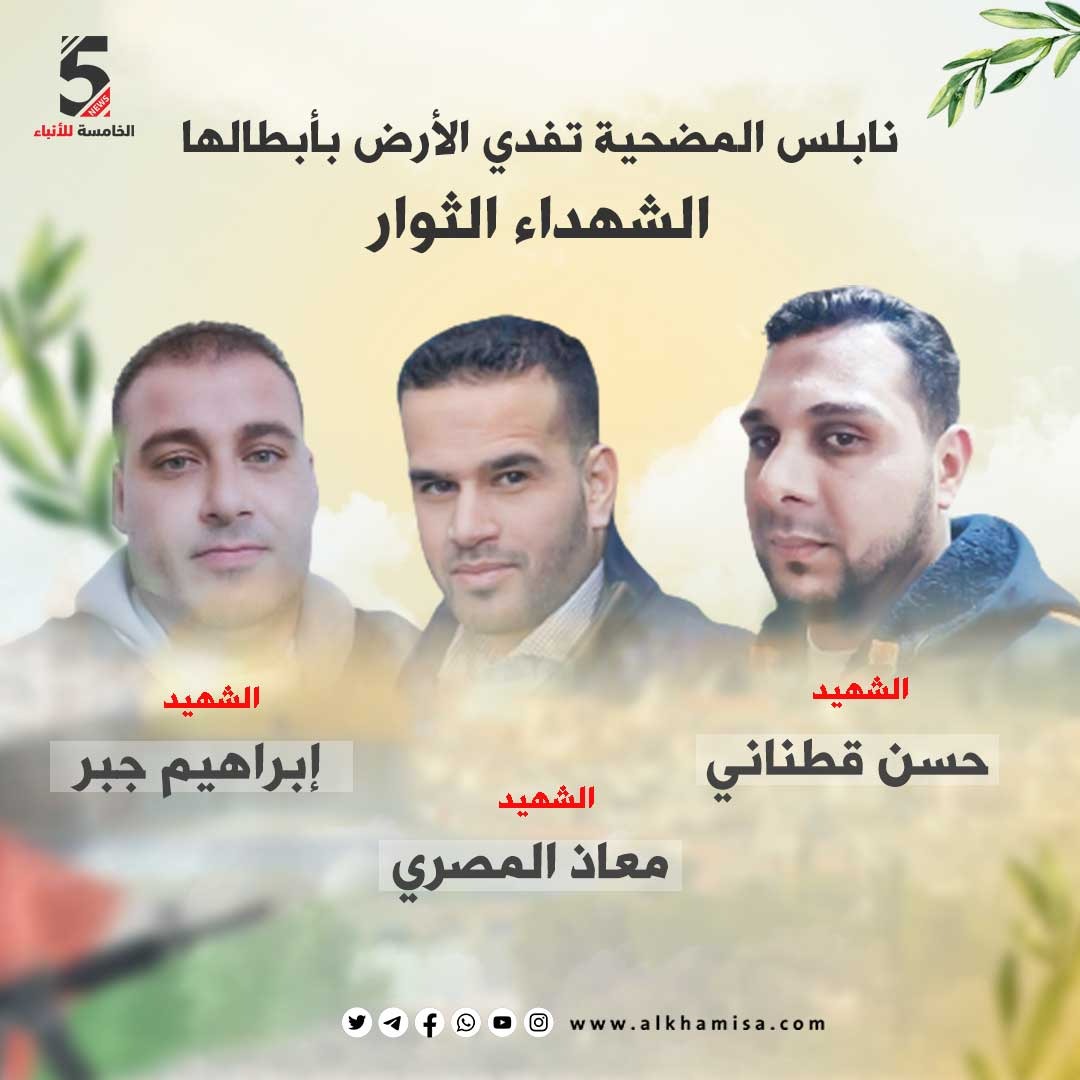 الشهيد حسن قطناني والشهيد معاذ المصري والشهيد إبراهيم جبر