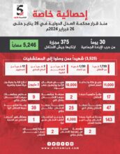 إحصائية خاصة(منذ قرار محكمة العدل الدولية في 26 يناير حتى 26 فبراير 2024م)
