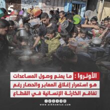 الاونروا : ما يمنع وصول المساعدات هو استمرار اغلاق المعابر والحصار
