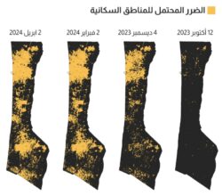 تحليل صور الأقمار الصناعية يظهر حجم الدمار والضرر المحتمل للمناطق السكنية في قطاع غزة