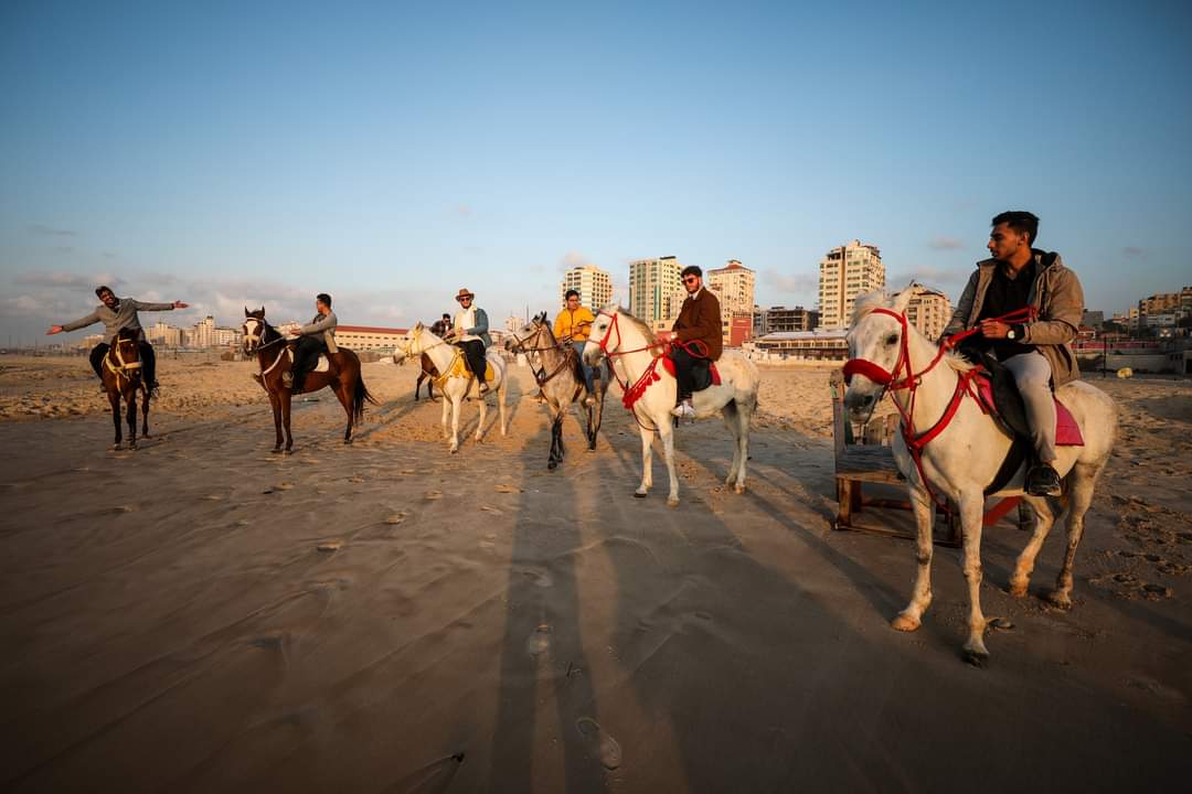 📷مواطنون يستمتعون بأوقاتهم على شاطئ بحر مدينة غزة مساء اليوم.