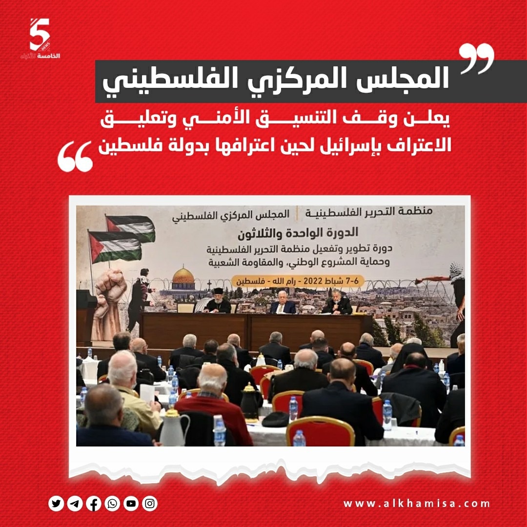 المجلس المركزي يعلن وقف التنسيق الأمني مع إسرائيل