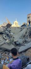 شبكة الخامسة للأنباء _غزة مشاهد من تدمير كنيسة الروم الارثوزكس بحي الزيتون من قبل الاحتلال الصهيوني