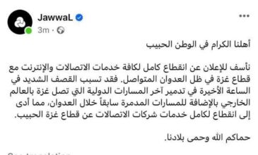 انقطاع كامل لكافة الاتصالات والإنترنت في قطاع غزة