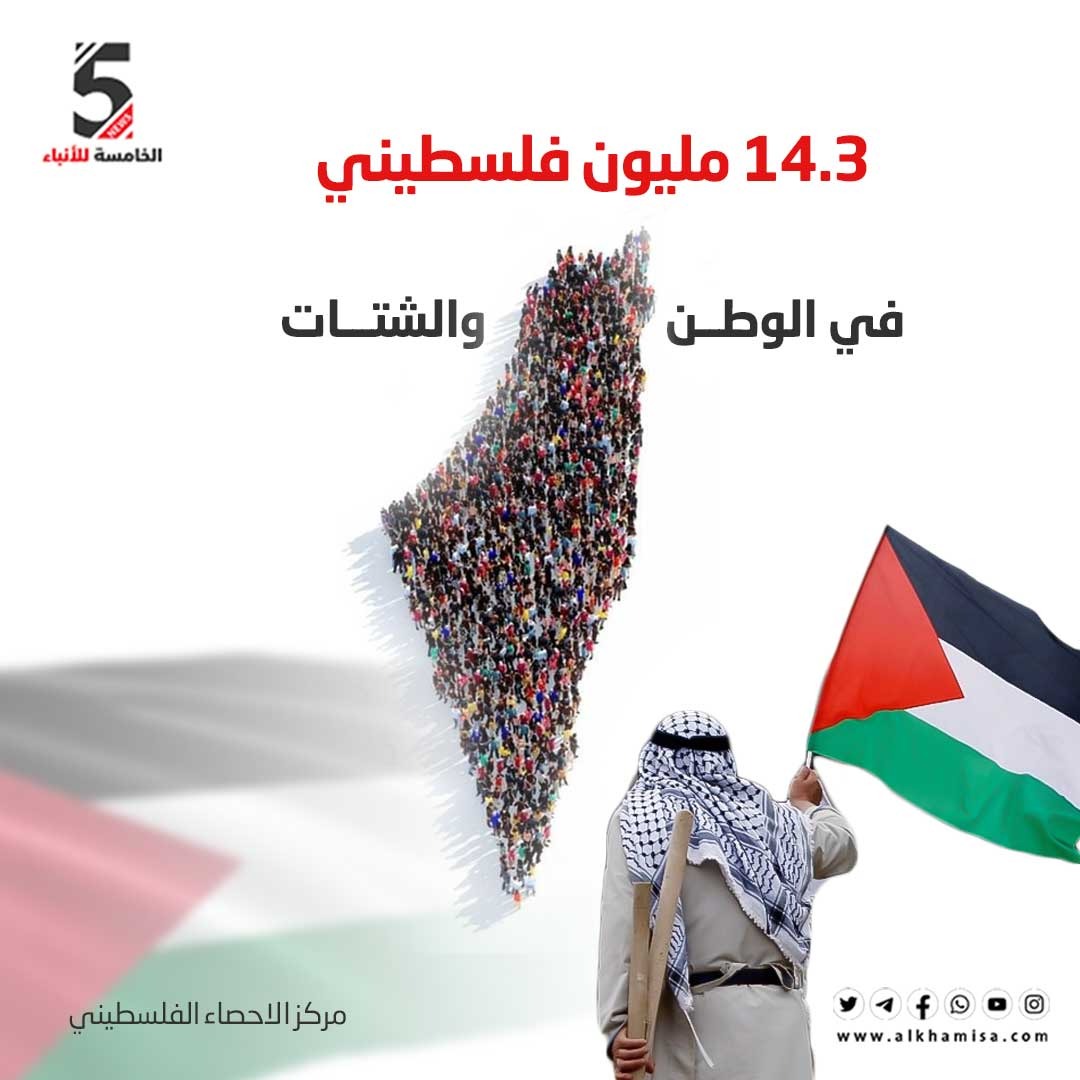 الخامسة للأنباء-غزة نشر الجهاز المركزي للإحصاء تقديرات بأن تعداد الفلسطينيين، في العالم، بلغ 14.3 مليون شخص في منتصف العام الحالي،…