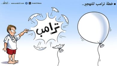 كاريكاتير خطة ترامب للتهجير بريشة الفنان الدكتور علاء اللقطة