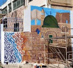 صور| الفنانة المقدسية حورية سعادة ترسم جداريات بمشاركة الأطفال لمعالم بلدة الجيب بالقدس المحتلة