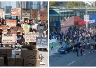 تظاهرة أمام مؤتمر شركة “جوجل” تضامنا مع الشعب الفلسطيني