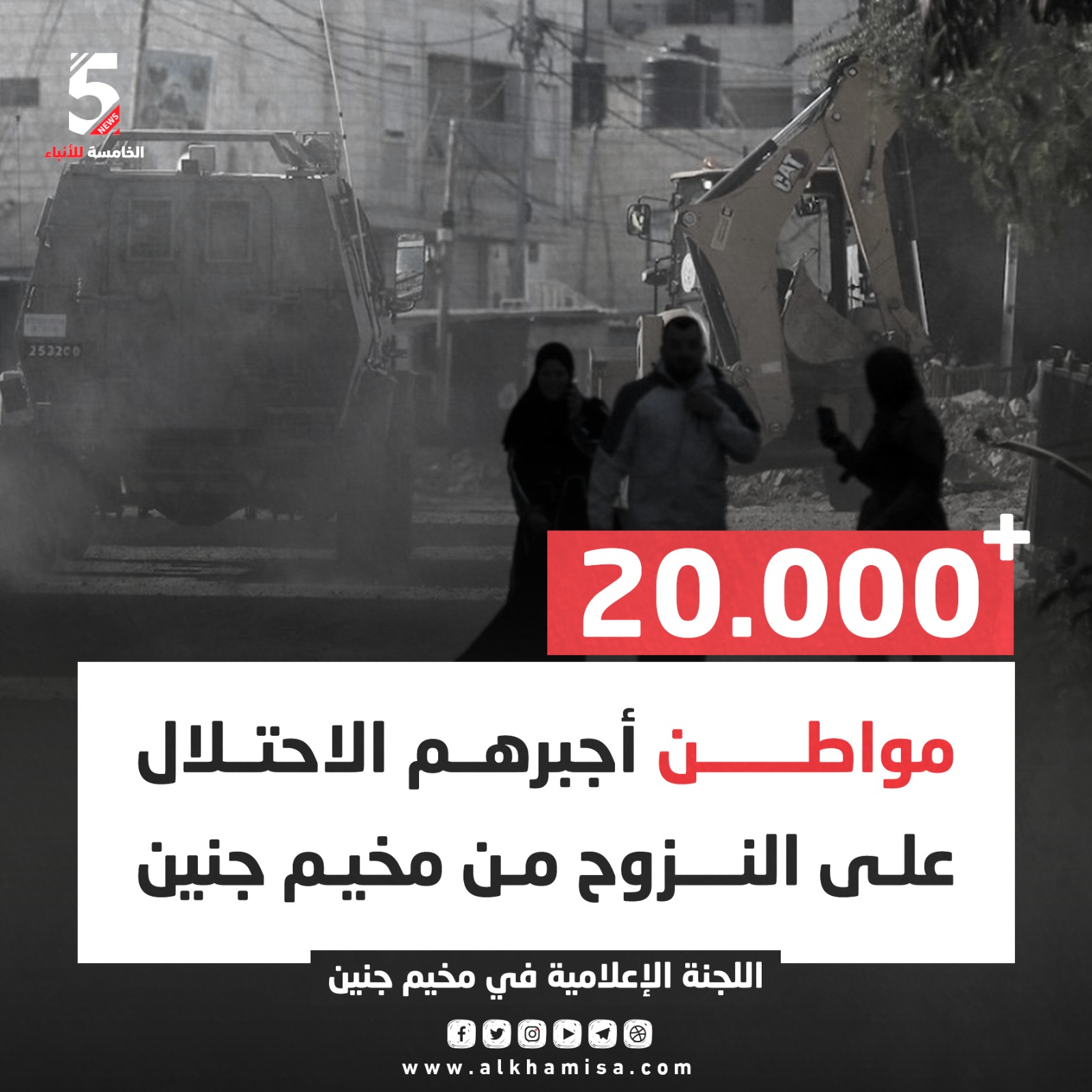 20 ألف مواطن أجبرهم الاحتلال على النزوح من مخيم جنين