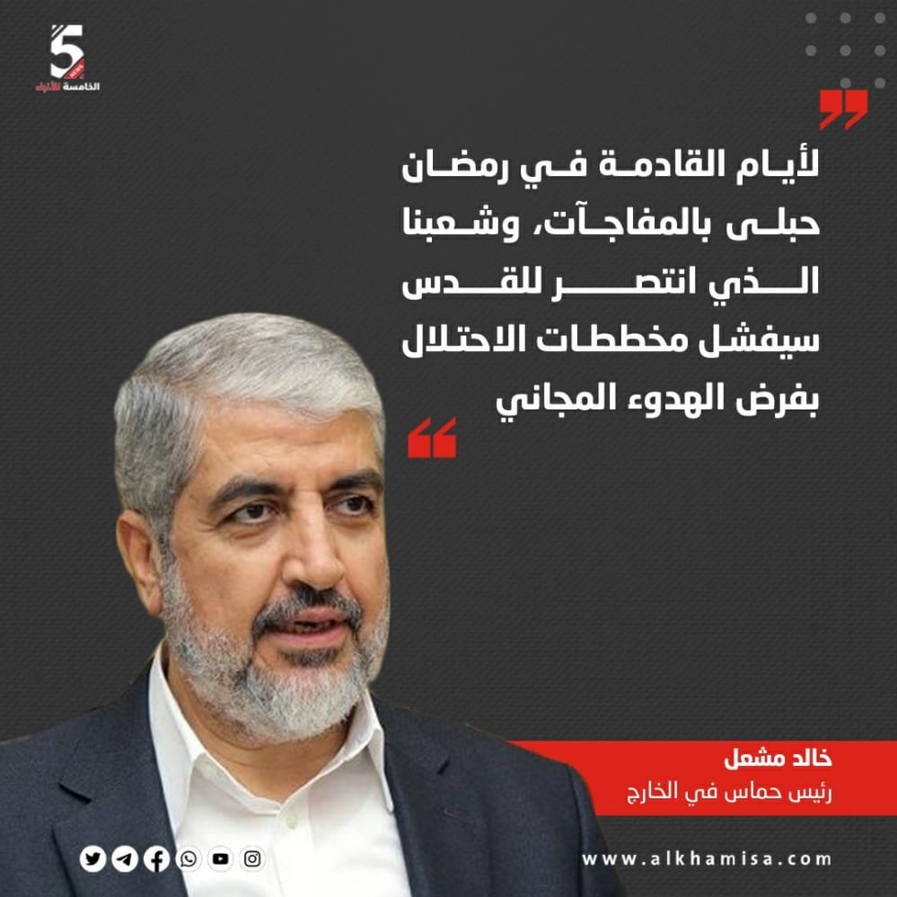 الخامسة للأنباء – وكالات: قال رئيس حركة حماس في الخارج خالد مشعل “إن ما شهدته غزة في ساعات الفجر الأولى…