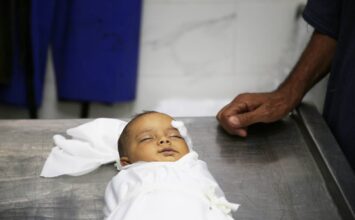 صور | تشييع الطفلة حبيبة معروف (6 أشهر) التي استشهدت برصاصة طائرة مسيرة “كواد كابتر” داخل خيمة عائلتها في شارع النفق بغزة